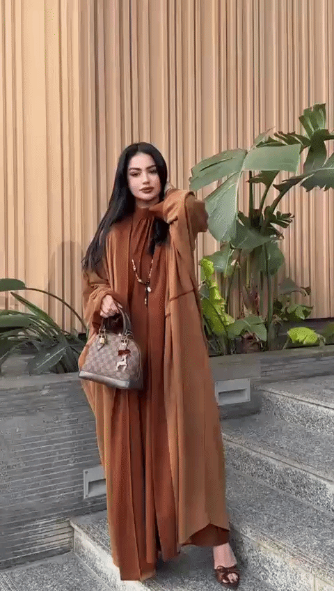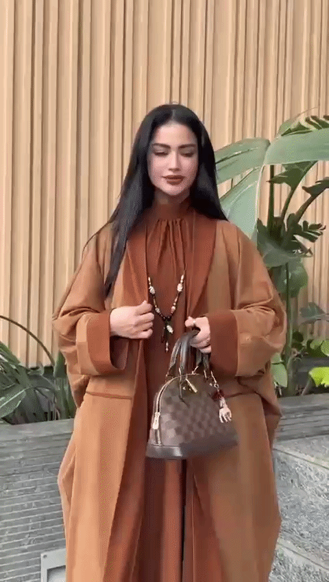 التفاصيل الأمامية الناعمة تعطي العباية مظهراً أنيقاً وبسيطاً يناسب مختلف الأذواق.